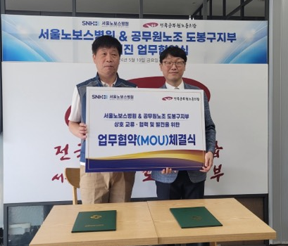 Подписание соглашения о сотрудничестве между Добонгским отделением Сеульского регионального штаба Профсоюза государственных служащих и медицинского центра Новос в Сеуле