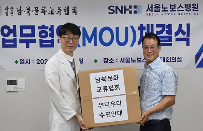 [24 июля 2023 г.] Ассоциация культурного обмена Юг–Север подписала соглашение о сотрудничестве с медицинским центром Новос в Сеуле с целью создания системы сотрудничества в сфере медицинских услуг и укрепления здоровья руководителей, сотрудников и сторонников Ассоциации, а также новых переселенцев.