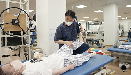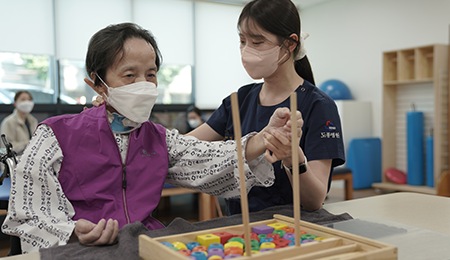 На каждом этаже и в каждом отделении оборудованы лечебные кабинеты, чтобы пациенты могли полностью сосредоточиться на процессе реабилитации. Мы также создали систему, в рамках которой профессиональные сиделки и медицинский персонал обеспечивают уход за пациентами круглосуточно, 24 часа в сутки.